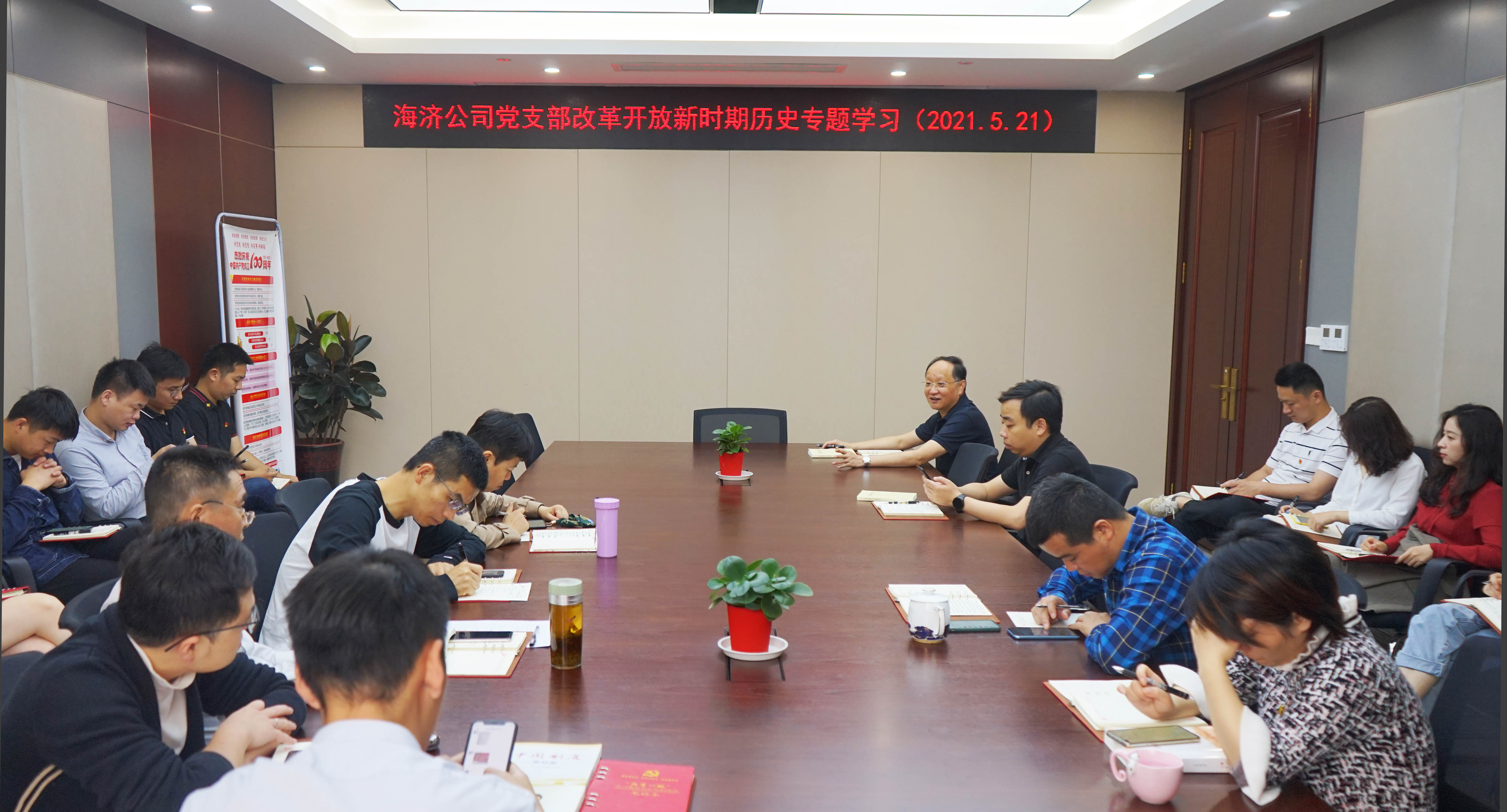 ????? 5月21日,江西省海濟融資租賃股份有限公司黨支部開展黨史學習教育“改革開放新時期歷史”專題學習,深刻領(lǐng)會我們黨領(lǐng)導人民進行改革開放新的偉大革命,開創(chuàng)、堅持和發(fā)展中國特色社會主義道路,使中華民族實現(xiàn)了從富起來到強起來歷史性飛躍的奮進歷程。集團公司黨委副書記、總經(jīng)理、海濟公司董事長柳習聰同志參加活動并講專題黨課。