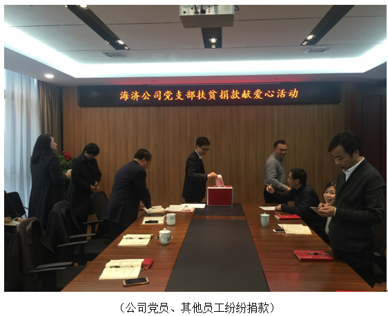 ?? ? ?海濟(jì)公司黨支部將學(xué)習(xí)宣傳貫徹黨的十九大精神落實(shí)到具體行動(dòng)上,結(jié)合“兩學(xué)一做”活動(dòng)內(nèi)容,組織公司全體黨員為集團(tuán)公司扶貧點(diǎn)捐款,為扶貧攻堅(jiān)貢獻(xiàn)力量。