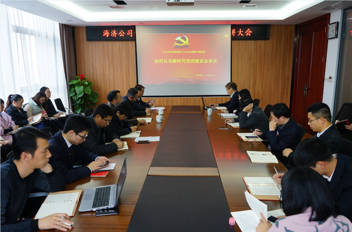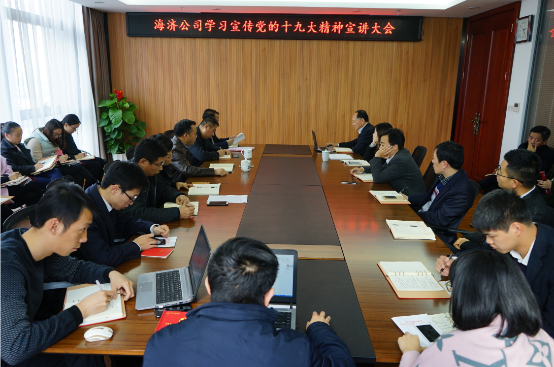 ? ? ? 2017年11月22日,海濟(jì)公司黨支部利用黨員主題日活動(dòng)時(shí)間組織開展學(xué)習(xí)貫徹黨的十九大精神集中宣講活動(dòng),集團(tuán)公司黨委副書記、總經(jīng)理、海濟(jì)公司董事長柳習(xí)聰?shù)綍⒓硬ь^進(jìn)行宣講,公司黨支部書記作了專題宣講,公司全體員工參加了本次學(xué)習(xí)活動(dòng)。