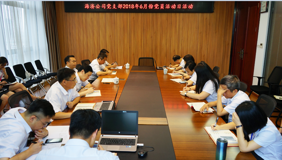 ????? 2018年6月20日下午,海濟(jì)黨支部例行開展了“不忘初心、牢記使命”主題黨員活動日活動?;顒觾?nèi)容包括傳達(dá)文件精神、通報組織發(fā)展情況、集中理論學(xué)習(xí)、專業(yè)操作實務(wù)講座、現(xiàn)場繳納黨費等。集團(tuán)公司黨委副書記、總經(jīng)理、海濟(jì)公司董事長柳習(xí)聰同志參加活動。
