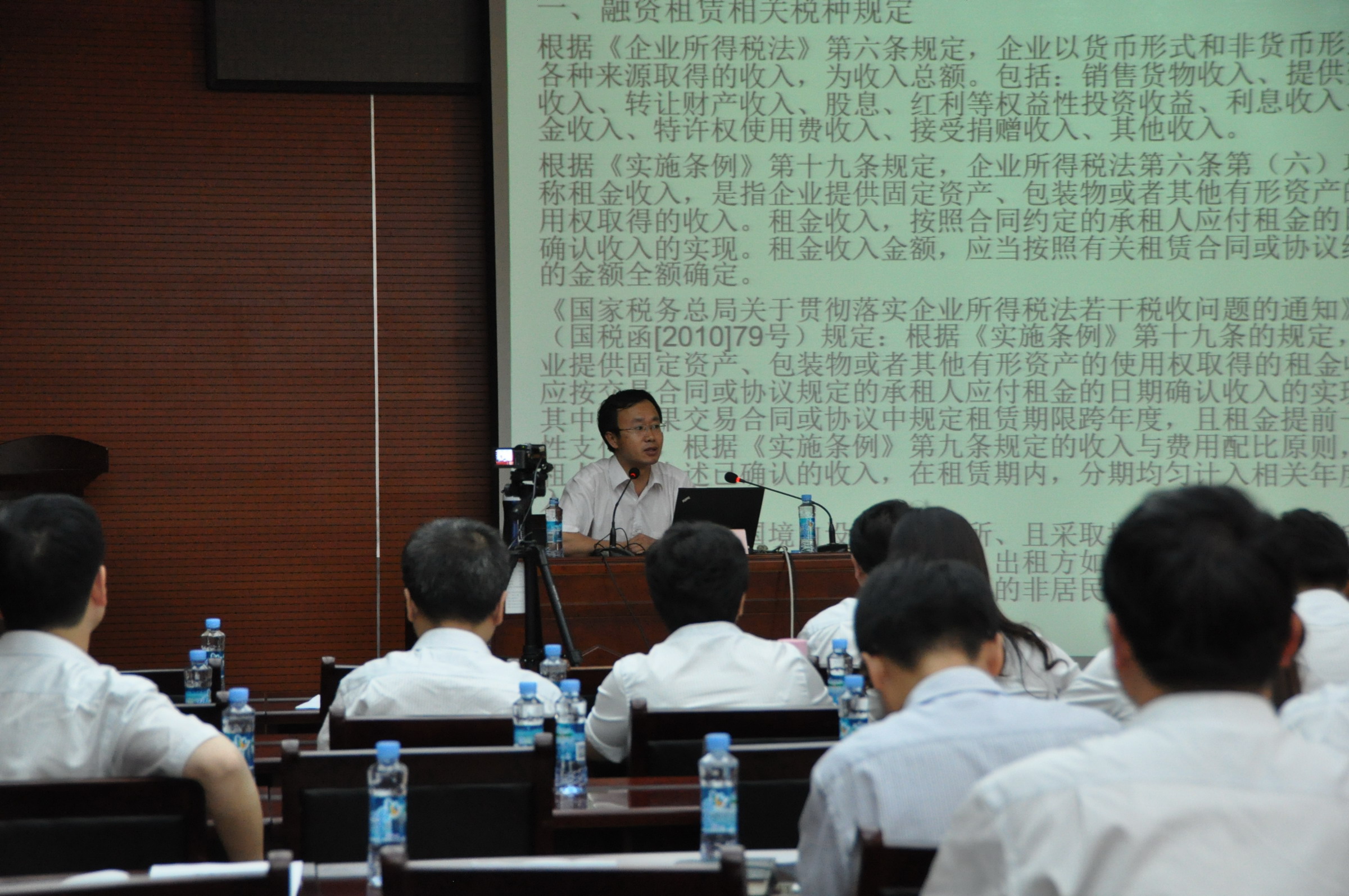 ??????? 王尤貴教授重點講解了融資租賃相關(guān)稅種規(guī)定、“營改增”背景與基本概念、“營改增”融資租賃公司相關(guān)政策解讀、發(fā)票管理、業(yè)務(wù)合同條款影響分析及建議、稅負影響及定價對策初步分析等內(nèi)容,大家還就“營改增”的一些具體問題進行了深入的溝通和交流。