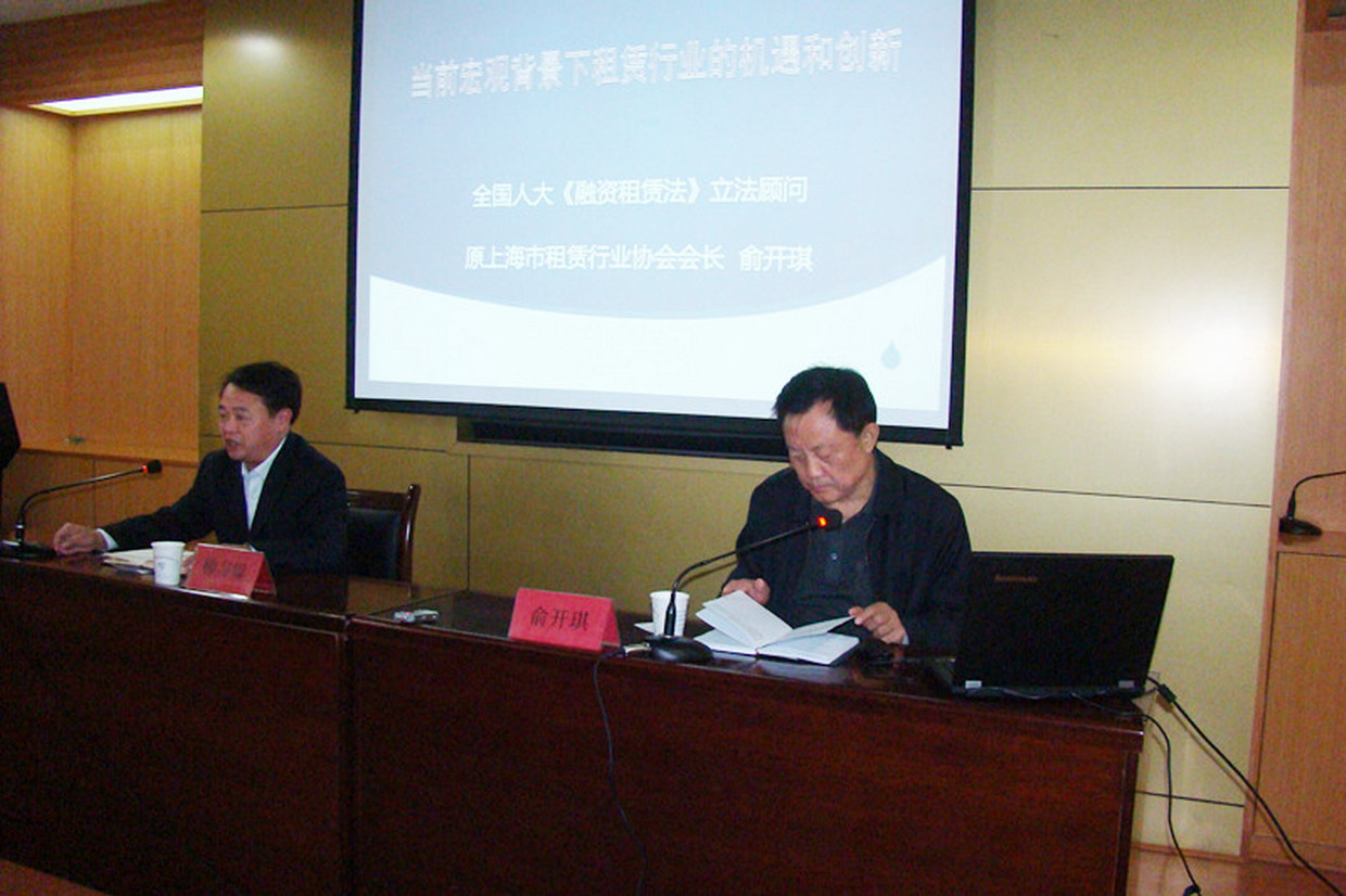 ??? 俞開琪先生就“當(dāng)前宏觀經(jīng)濟背景下融資租賃行業(yè)所面臨的機遇和挑戰(zhàn)”做了重點發(fā)言。他深入分析了融資租賃業(yè)的發(fā)展現(xiàn)狀及當(dāng)前形勢下出現(xiàn)的風(fēng)險把控難點和“業(yè)務(wù)創(chuàng)新”為租賃業(yè)發(fā)展帶來的機遇,提出了以“盤活政府存量資產(chǎn)、幫扶中小微企業(yè)融資、破解西部資金短缺”為中心的業(yè)務(wù)創(chuàng)新思路。并同與會人員就具體業(yè)務(wù)細(xì)節(jié)進行了深入的研討。